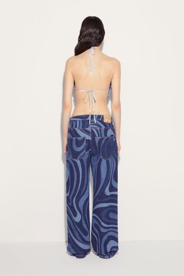 Camille Miceli stamps this denim top with the psychedelic swirls of the iconic Marmo print. The backless halterneck design is finished with playful fringed edges and fitted with slim self-tie straps.