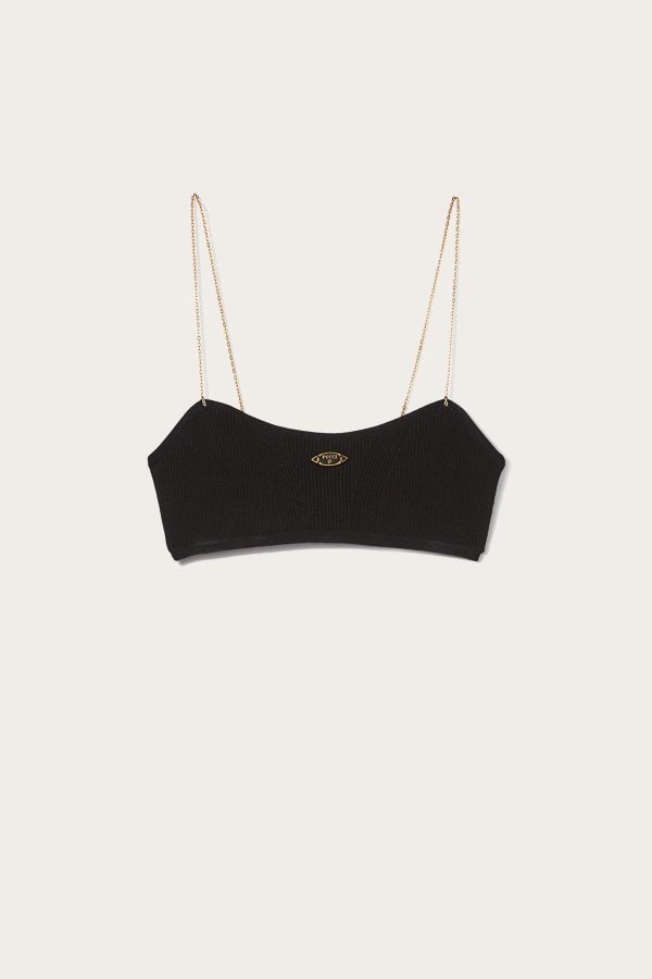 Pucci illustrates artful understatement: this bandeau top has a simple knitted construction and hangs from slim gold-tone chains. A logo plaque at the neck completes the minimalist design.