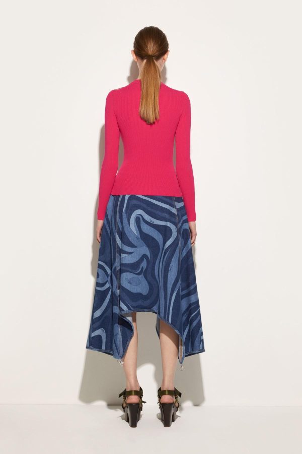 Pucci offers this sleeveless sweater with an unexpected twist; a slim chain drapes elegantly over the cut-out shoulders and front. It’s complete with a polished logo plaque at the neck.