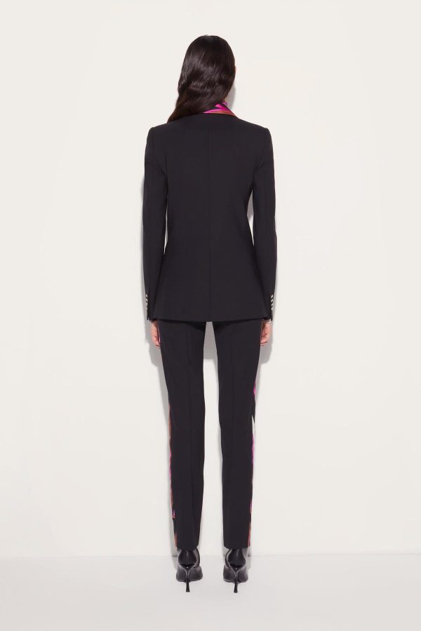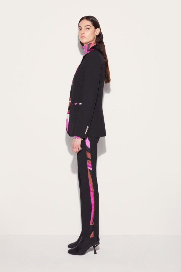 Camille Miceli showcases Pucci’s tailoring prowess with these tapered trousers, which are expertly cut from stretch-infused virgin wool. The richly-hued Iride-print side stripes lend them an energetic touch.