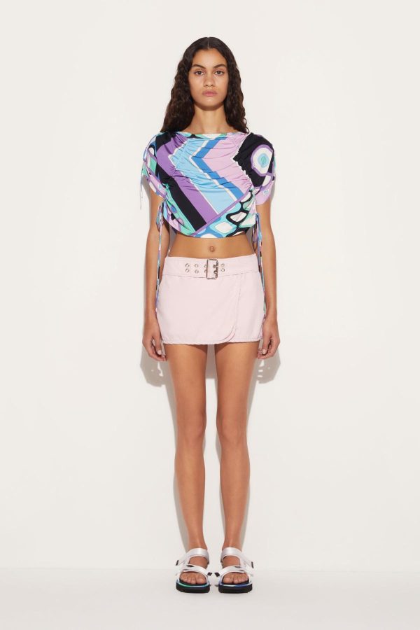 Pucci swaps bold colour and pattern for retro influences with this cotton-silk skirt. The low waistband is equipped with a wide buckled belt; its silver-tone hardware matches the signature intertwining fish charms at the back zips.
